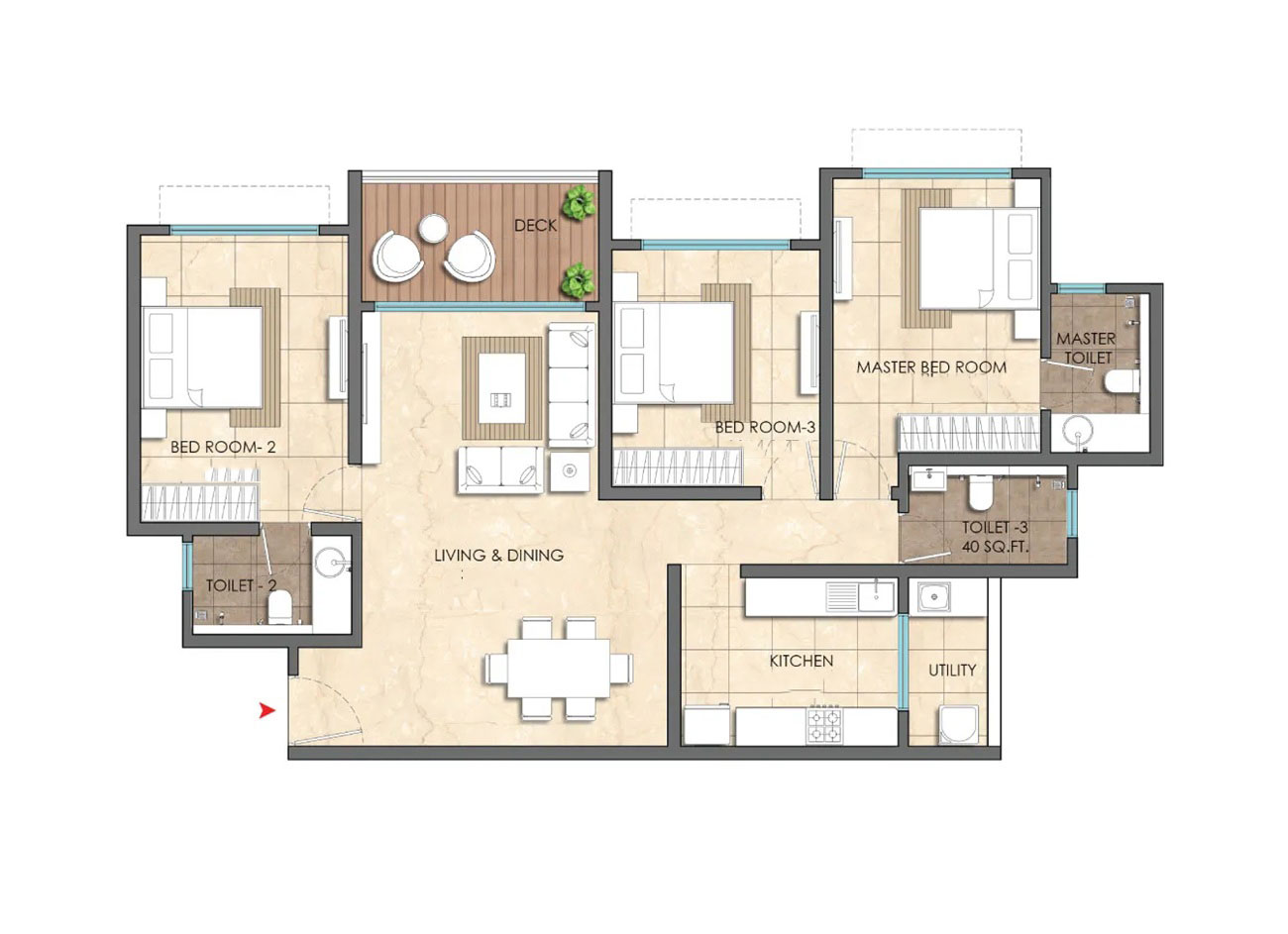 Lodha CountrySide introduces 3 BHK apartments with a carpet area of 1200-1300 sq. ft., offering budget-friendly yet comfortable living spaces equipped with essential amenities.